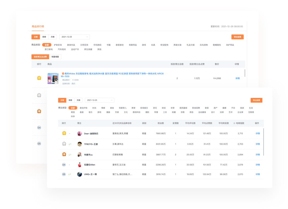 多項(xiàng)內(nèi)容全面解讀達(dá)人,歷史內(nèi)容追蹤,AI去水粉絲預(yù)估,智能算法評(píng)估達(dá)人價(jià)值,有效挖掘優(yōu)質(zhì)達(dá)人